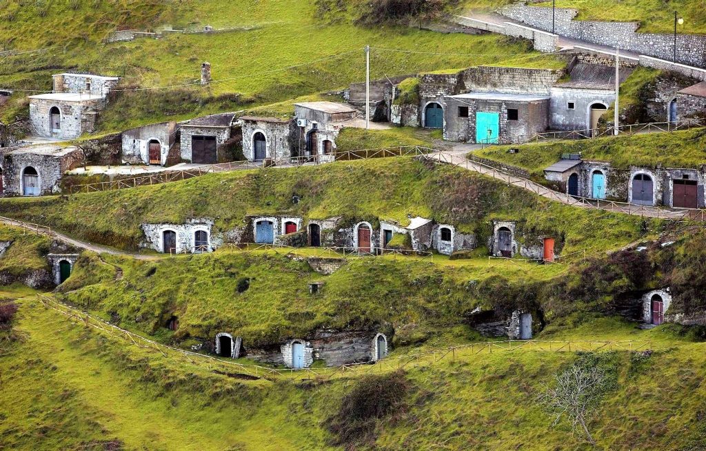 → Le Sheshë — il Parco Urbano delle Cantine Un unicum di 131 grotte e cantine scavate nel tufo vulcanico nel quartiere “Sheshi” — in albanese significa “piazza” — risalenti a 500 anni fa. Wikipedia Le porte colorate nel tufo, il fresco naturale costante, il profumo dell’Aglianico che affina nel buio. Pasolini le ha rese celebri girando qui scene del suo film “Il Vangelo secondo Matteo” nel 1964 — il paesaggio lucano gli ricordava la Palestina biblica. Lucaniroma